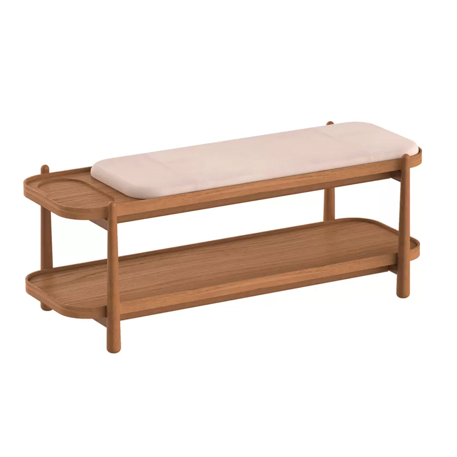 Conforto e praticidade: Assento estofado confortável com espaço funcional para armazenar calçados ou acessórios.