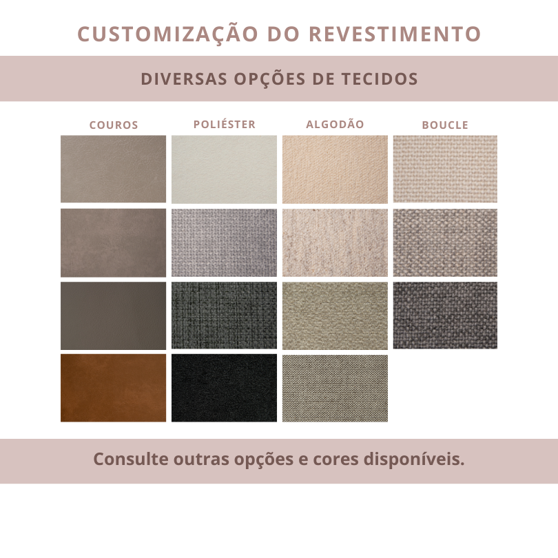 - Opções de Personalização: Variedade de cores para madeira e tecido (frente e costas), além da possibilidade de incluir o debrum para um acabamento sofisticado.