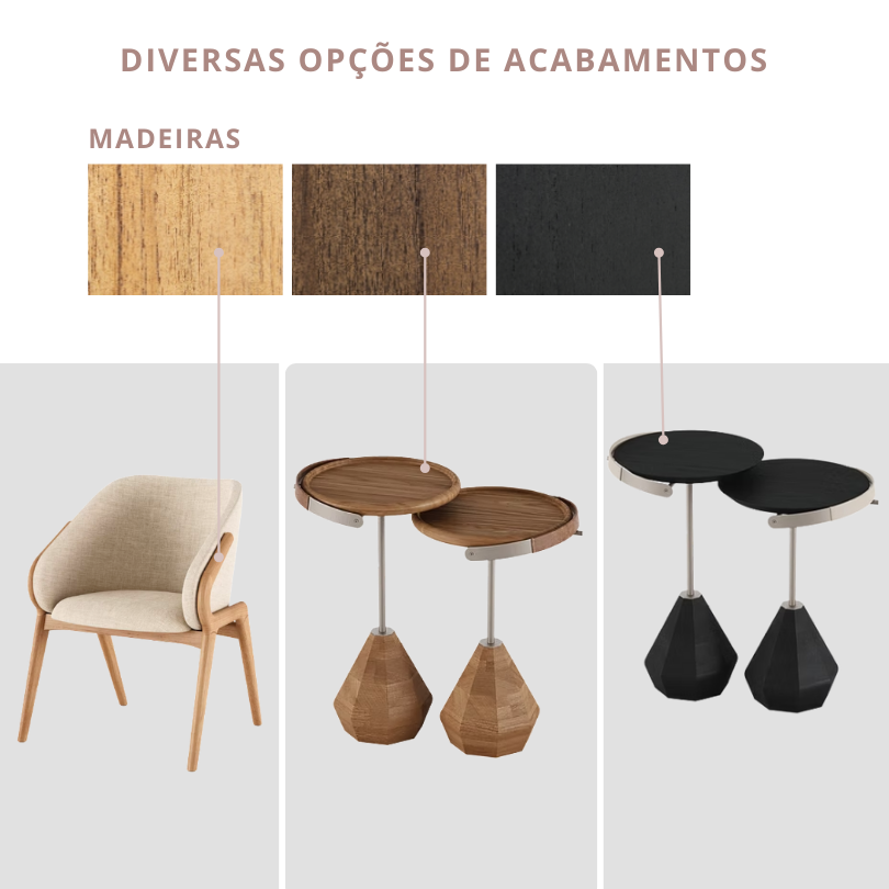 - Estrutura em Madeira Maciça: Proporciona resistência e durabilidade, com design atemporal.