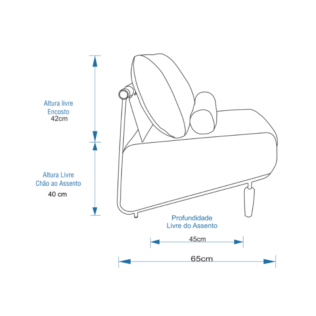 - Encosto levemente inclinado para suporte adequado à postura.