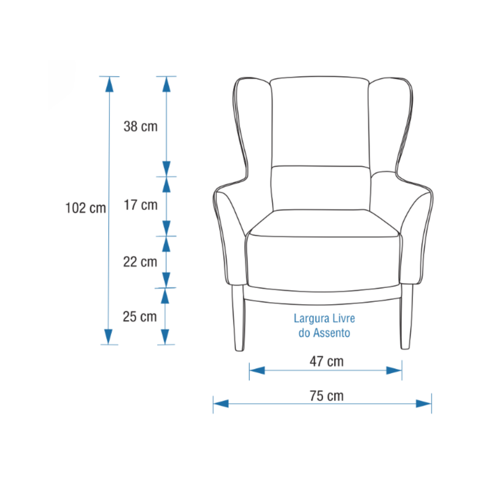 - Largura: 75 cm – proporção equilibrada para máximo conforto.