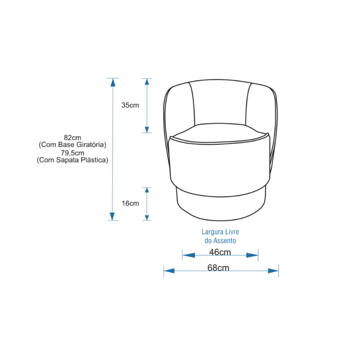 - Altura: 82 cm (base giratória); 79,5 (com sapata plástica)