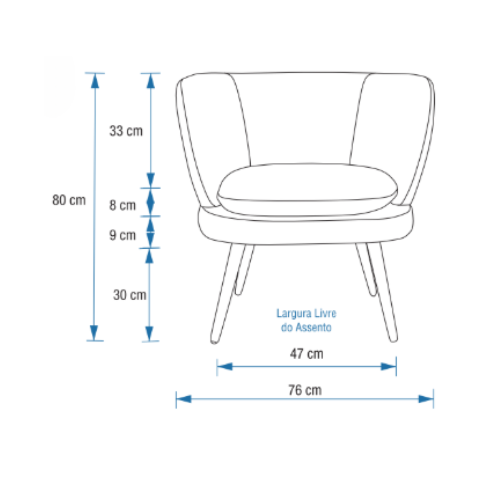 - Largura: 76 cm – medida equilibrada para proporcionar conforto.