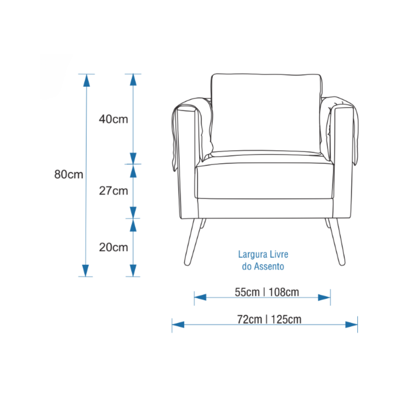 - Largura: 78 cm – estrutura ampla para maior conforto.