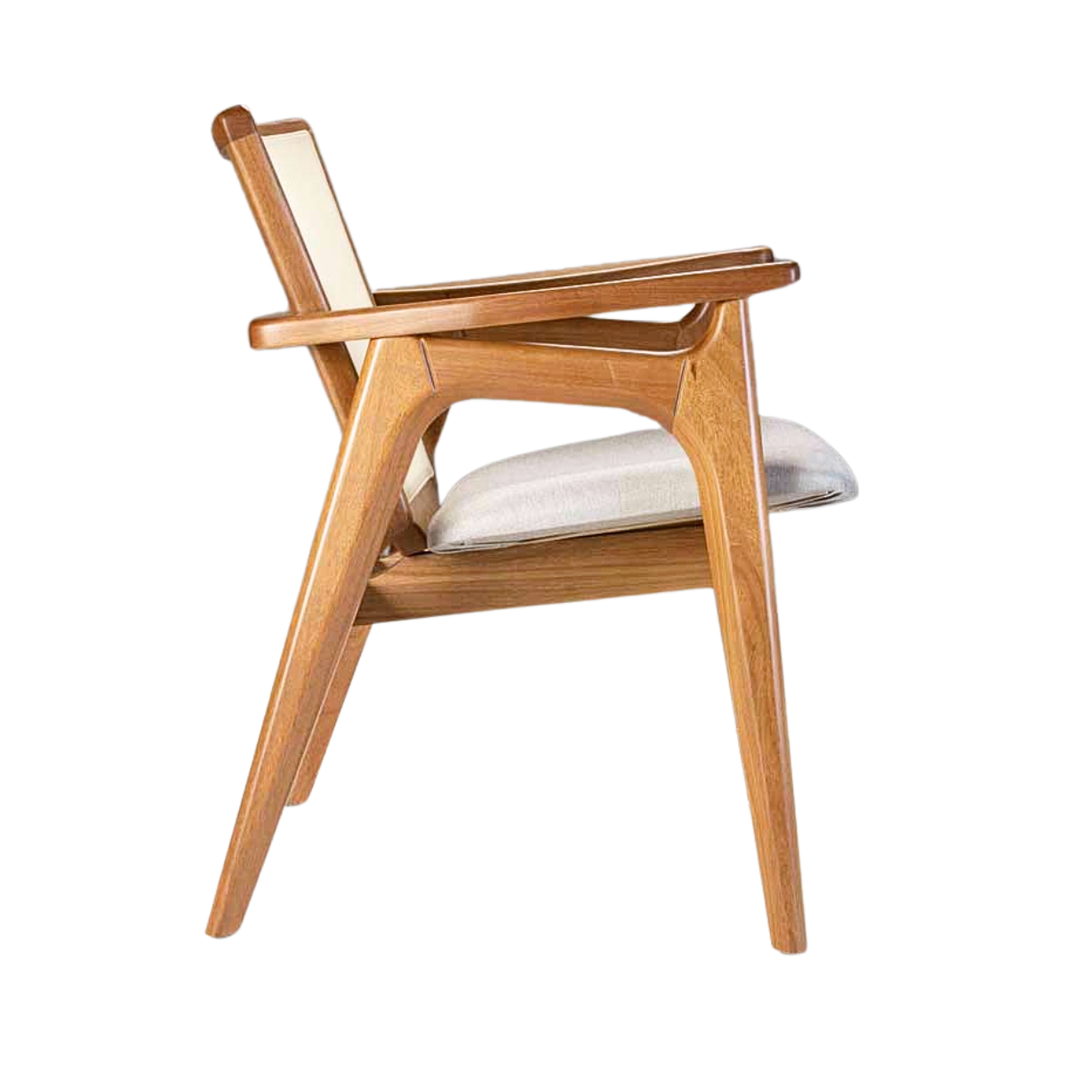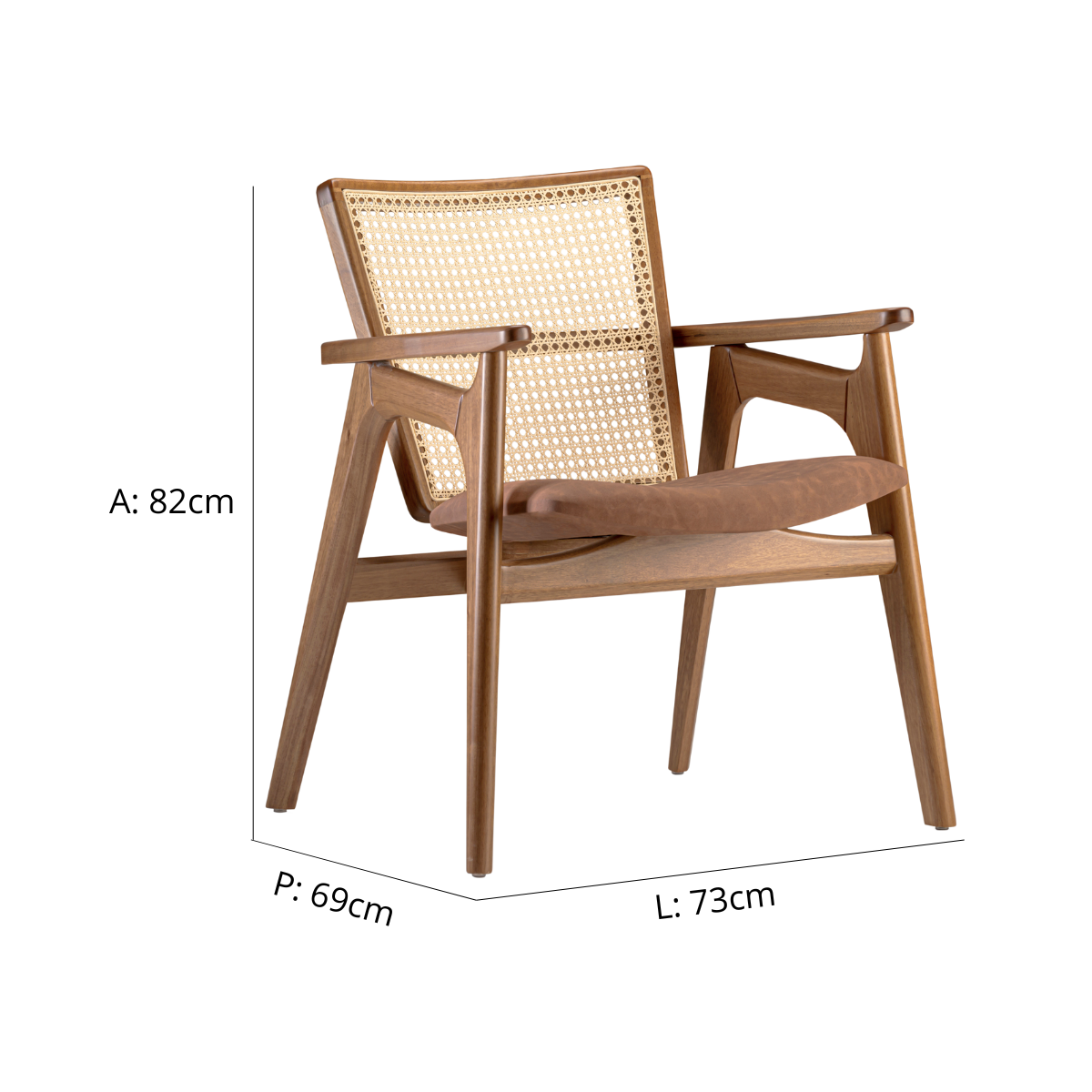 Seu encosto levemente inclinado e assento generoso proporcionam um apoio ergonômico, perfeito para momentos de leitura ou para receber visitas com charme e aconchego.