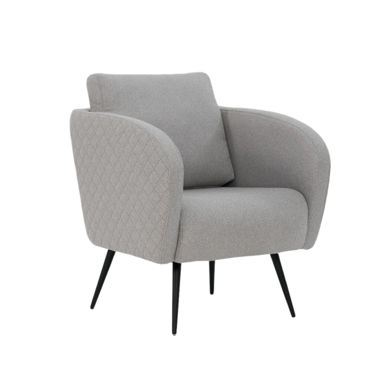 Combine a Poltrona Rhea Tresse com peças de madeira ou metal para criar um contraste sofisticado, ideal para salas de estar, recepções ou espaços de convivência refinados.
