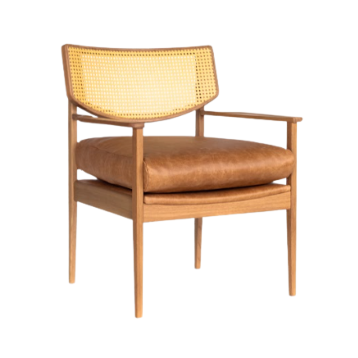 Combine a Poltrona Sorell com mesas de jantar em madeira natural e luminárias de estilo orgânico, como as feitas com fibras naturais. Para um toque extra de conforto, adicione almofadas em tons neutros ou com estampas geométricas discretas.